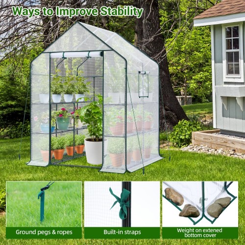 Ohuhu Greenhouse for Outdoors: 3 Tiers 12 Shelves Walk-in Indoor Green House Heavy Duty Plant Stands Reinforced Plastic PE Cover Mini Portable Warm House for Outside, 4.8×2.5×6.4 FT