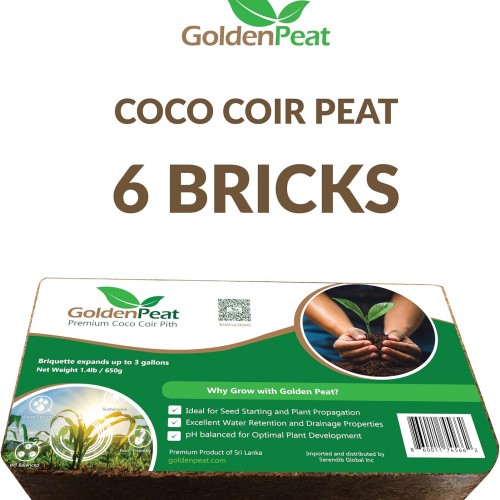 Organic Coconut Peat Bricks (650g X 6 Pack) – Low EC, Sustainable Growing Medium for Gardens, pots, and Seed Starters. Just add Water to Transform Each Brick into 8-10L of Fluffy Nutrient-Rich Coir
