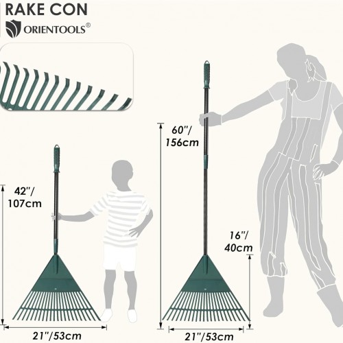 - MULTIFUNCTION HANDLE: Our garden rake can adjust the handle from 42 inches to 60 inches. By adjusting the height of the handle, you can customize the length of the handle to your needs, thus providing optimal comfort and convenience during use. The non-slip grip can rotate 360 degrees and hang up conveniently.