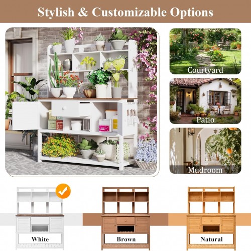 Outdoor Potting Bench-Fir Wood Garden Work Table with Hutch &Storage-Rustic Planting Station for Backyard, 50.2″x19.7″ x66.1″ (Natural) (White + Wood + Country Style)