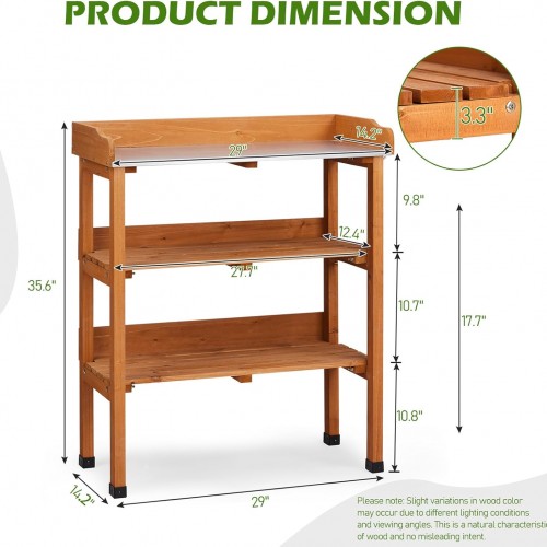 Outdoor Potting Bench Garden Work Station, Solid Wood Planting Table w/Sink Drawer Shelves,Metal Top, Folding Patio Furniture for Porch Balcony (29.1 x 14.2 x 35.6(Orange Yellow))