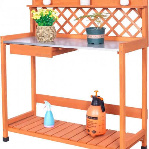 - Functional & Versatile Design: This potting bench features a spacious metal tabletop that is easy to clean and water-resistant, making it ideal for all your gardening tasks.