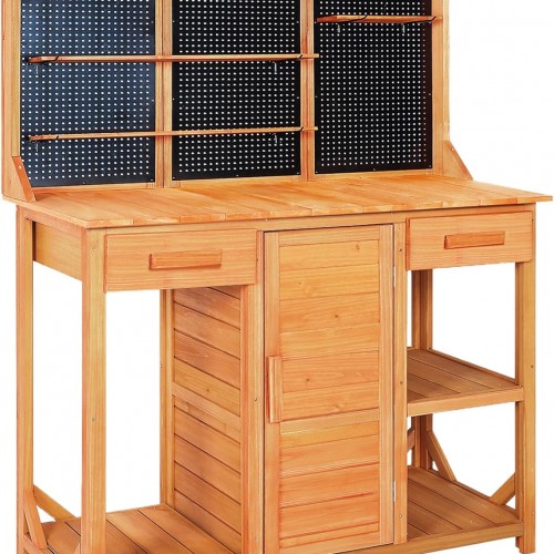 - 【Premium Natural Fir Wood】:Potting bench for outside is specially designed for your garden,The main body is 100% fir wood and configure a holey metal plate,complimentary 18 hooks used for metal hole board.Configured with 5 pieces of laminate used for slatted shelf ,Feel free to mix and match the way you want to use it