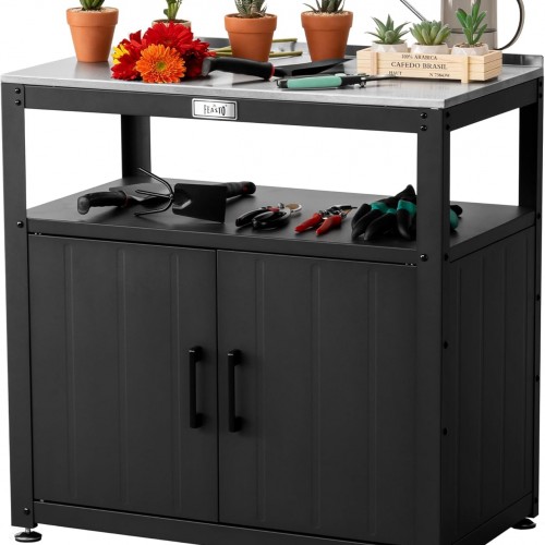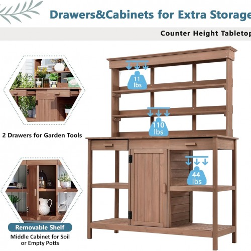 - 🧰 2 Drawers & Cabinet for Hidden Storage: Keep your workspace tidy with two smooth-gliding drawers for tools, gloves, or seeds. A central cabinet with removable shelf is perfect for larger items like fertilizer bags or extra planters.