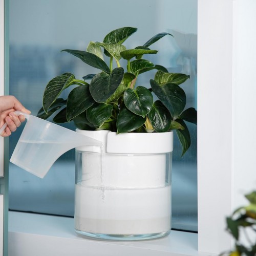 Phoenix Vine 10 Inch Self Watering Planter, White Terracotta Clay Pot with Glass Reservoir for Indoor Plants, Herbs, Flowers, Set of 1, 52-B-I-1