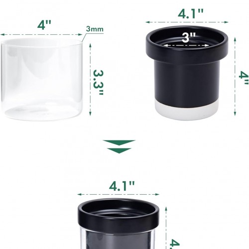 Phoenix Vine 4 Inch Self Watering Planter Pot, Black Terracotta Clay Pot with Glass Reservoir for Indoor Plants, Herbs, Flowers, Set of 2, 52-C-E-2