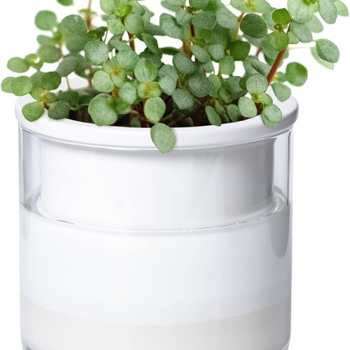 Phoenix Vine 4 Inch Self Watering Planter Pot, Design White Terracotta Pots for Plants, Indoor Cylinder Terra Cotta Pots with Glass Vase, Set of 2, 51-B-E-2