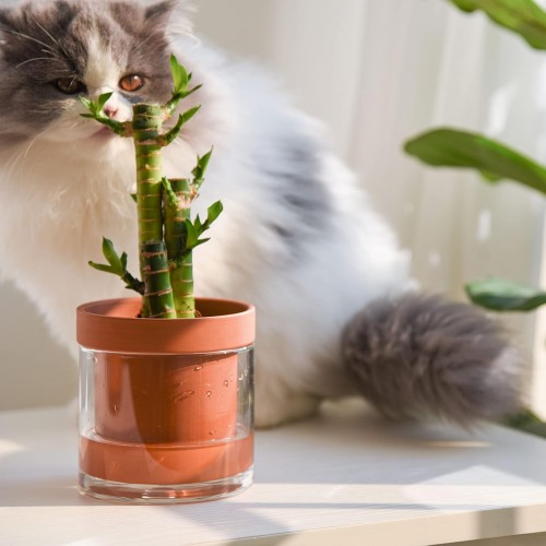 Phoenix Vine 4 Inch Self Watering Planter Pot, Terracotta Clay Pot with Glass Reservoir for Indoor Plants, Herbs, Flowers, Set of 4, 52-A-E-4