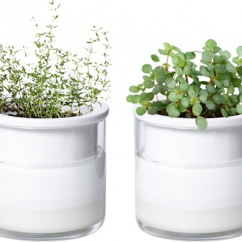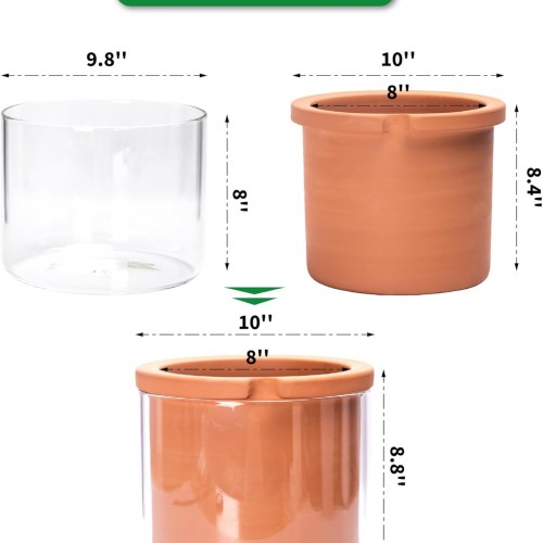Phoenix Vine 8 Inch Self Watering Planter Pots, Design White Terracotta Pots for Plants, Indoor Cylinder Terra Cotta Pots with Glass Vase, Set of 1, 51-A-H-1
