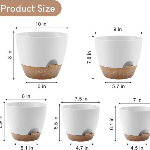 - [DEEP PLANTING SPACE]- 10/9/8/7.5/7 inch Self Watering Pot with deep reservoir makes it easy for when go on vocation that no need someone to come over water plants and flowers.