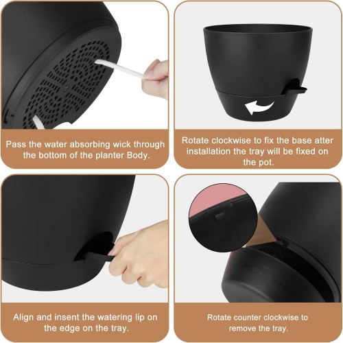 Plant Pots 12/10/9 Inch Self Watering Pots, Set of 3 Plastic Planters with Drainage Holes and Saucers,Plastic Flower Pots,Nursery Planting Pot for Indoor Out Door Plants(Pure Black)