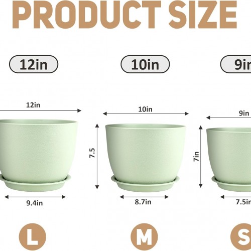 - [DEEP PLANTING SPACE]- 12/10/9 inch Extra large Plant Pot with deep reservoir makes it easy for when go on vocation that no need someone to come over water plants and flowers.Ideal gift, Carbonfree Certified.
