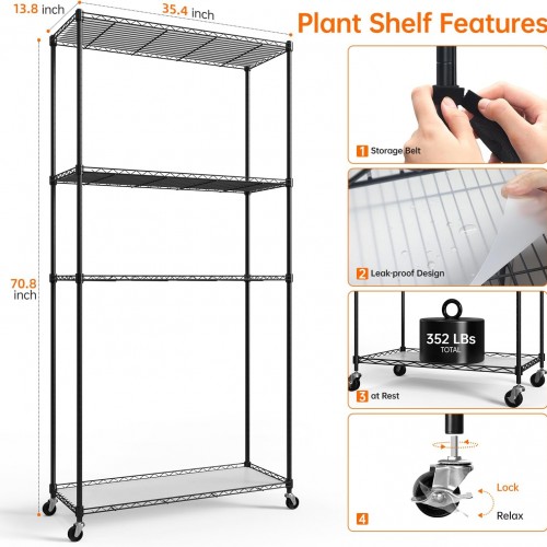 Plant Shelf with Grow Light with Timer, Tall Plant Stand with Adjustable Rack and Wheels, 6 Pack T5 3FT Full Spectrum Grow Lights for Indoor Plants, Seed Starting, Seed Tray, 35.4″x13.8″x70.8″