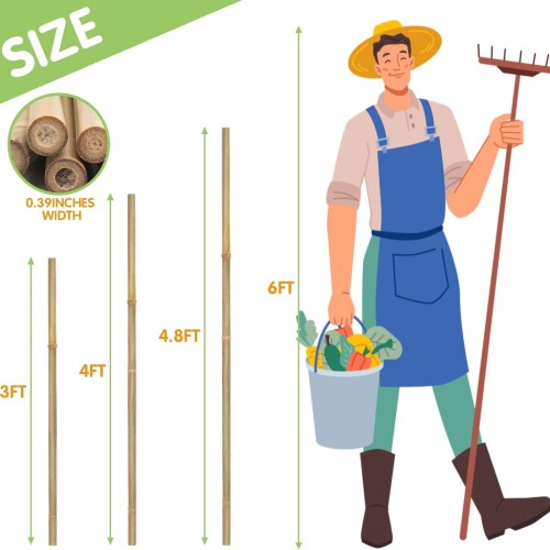- 【Premium Quality】:Bamboo stakes is exceptionally strong and durable,High-quality bamboo sticks are carefully selected and hand-made with a smooth surface with no visible cracks or blemishes. This helps to reduce damage to plants and makes them easy to insert into the soil.The bamboo garden stakes are fumigated twice to ensure that they can withstand the weight and wind and rain during the planting process. plant stakes are not easy to break or rot, have good quality, and have a long lifespan.