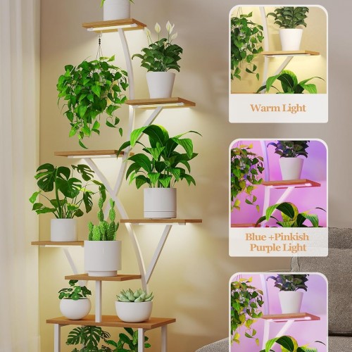 Plant Stand Indoor with Grow Lights – 64″ Tall Plant Shelf Lighted Corner Plant Stands for Indoor Growing Multiple Metal 8 Tiered Large S-Shape Flower Holder Plant Rack for Home Decor Patio White