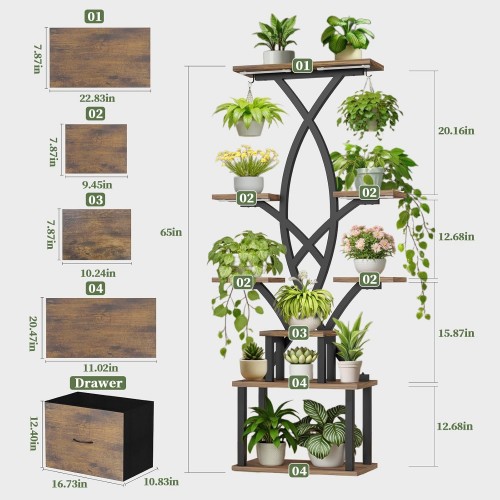 - 【Upgraded Storage Drawer】Metal plant stand comes with a removable waterproof drawer, which can easily store gardening tools or household items to keep the space tidy. The removable drawer can also be used as an independent storage box to adapt to your diverse needs. Plant shelf indoor is designed with adjustable height foot pads on the bottom plate, which can adapt to uneven floors, enhance stability, and also promote air circulation, effectively extend the service life of the tall plant stand.