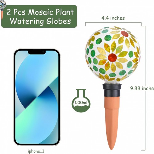 Plant Watering Globes Mosaic Self Watering Spikes 2 Pack for Indoor Outdoor Plants Automatic Plant Waterer Plant Watering Devices for Vacations Pot
