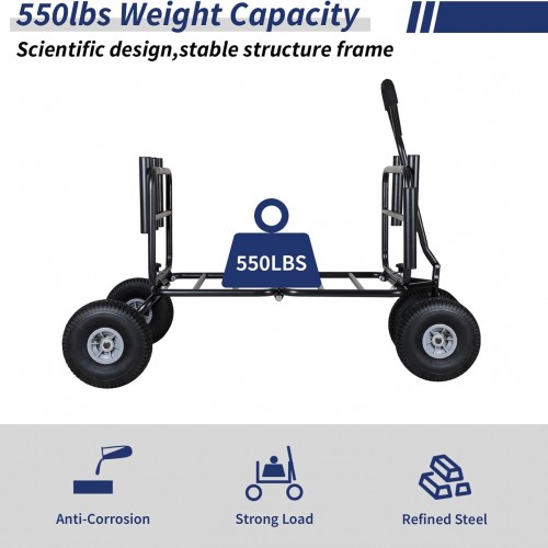 - [All-terrain Off-road Big Wheels] Four 11” large diameter all-terrain off-road universal inflatable wheels well enhance traction and improve stability, so that push and pull the wagon are very labor-saving and convenient.Enlarged size prevents overwhelming the wheel due to heavy items. The latest upgraded design makes the front wheels rotate as the handle turns, which is more energy-saving and easier to control than the universal wheel.Combined with unique anti-slip pattern can easily transport loads on a variety of terrains such as sand beach, gravel and grass