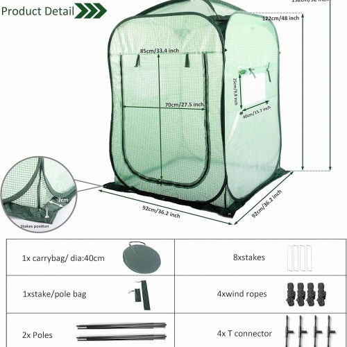 - LARGE SPACE -The size of the greenhouse is 94x94x122cm/37″L x 37″W x 48″H, weighting 3 kg, which is about6.6 pounds and folds down to a travel size of 18″L x 18″W x 2.36″H.