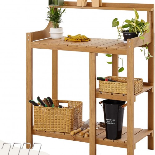 - 【Ample Storage Space】 Outdoor potting table features an open shelving design with 3-tiers storage shelves and 4 side hooks, allowing you to easily store and display your plants and other small items. This potting bench can accommodate multiple potted plants, providing enough space for your plants to grow and display. From pots and soil to tools and accessories, you can keep everything organized and within easy reach.