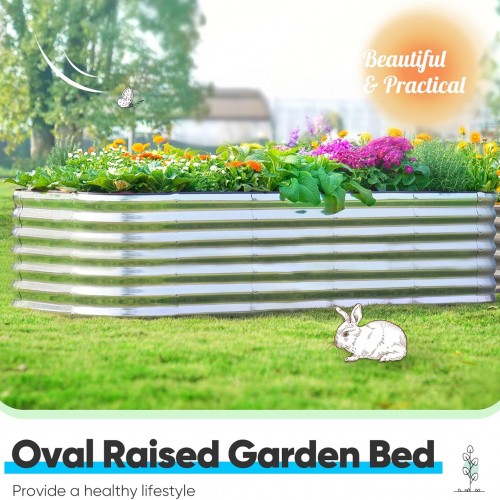 Quictent Raised Garden Bed Kit Oval Galvanized Metal Planter Box Tall for Vegetables Outdoor Backyard, Rubber Strip Edging Included, Silver 6x3x2 ft
