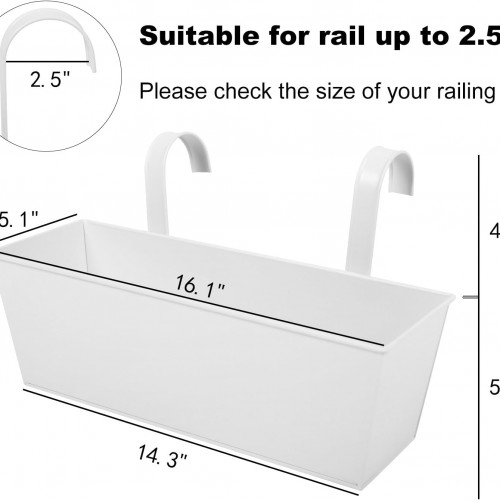 - SUITABLE SIZE: Our railing planters measure 15.8″ x 5.1″ x 5.1″, and the hook is suitable for railings up to 2.5 inches. Make sure to check the size before purchasing, and note that the hook arrives disassembled.