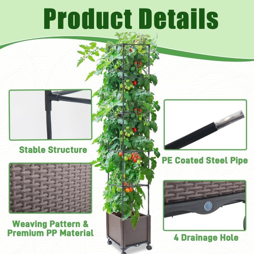 Raised Garden Bed Planter Box with Trellis, 74″ Self-Watering Tomato Planters for Climbing Plants Vine Flowers Outdoor Patio, Tomatoes Cage with Wheels, 1Pack