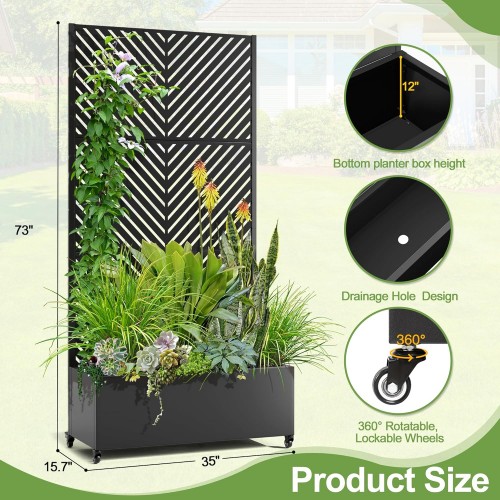 Raised Garden Bed with Trellis and Wheels,73″x35″x16″ Metal Raised Garden Bed,Black Parallel Metal Planter with Climbing Trellis for Vines & Vegetables