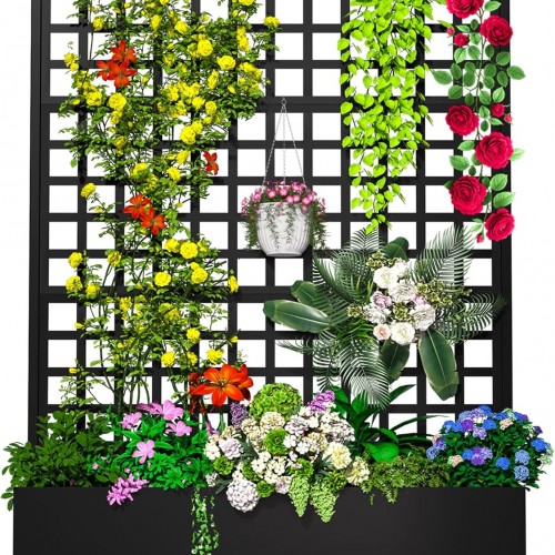 Raised Garden Bed with Trellis and Wheels,73″x35″x16″ Metal Raised Garden Bed,White Diamond Metal Planter with Climbing Trellis for Vines & Vegetables