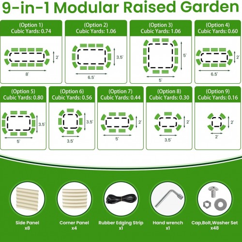 - Modular Raised Garden Bed:Our 9-in-1 modular kit means you can assemble one of 9 configurations,Pick your favorite one and then assemble your garden bed to fits your unique home garden space perfectly.
