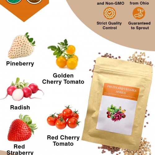 Red Strawberry and Pineberry Seed Pod Kit for AeroGarden, idoo, Ahopegarden with Red Strawberry, Radish, Pineberry,Red Heirloom/Golden Harvest Cherry Tomato – Compatible with All Hydroponics (12-Pod)