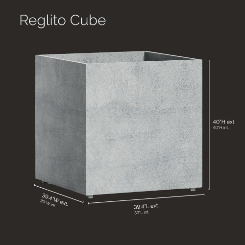 Reglito Cube Planter – Fiberglass Indoor/Outdoor and Weather-Resistant Large Planter (Concrete Stone, 39.4″ L x 39.4″ W x 40″ H)