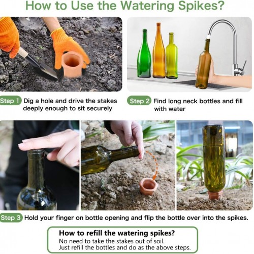 REMIAWY Plant Watering Spikes, Plant Vacation Waterer Wine Bottle Watering Stakes Terracotta Devices Slow Release Self Spikes for Indoor Outdoor
