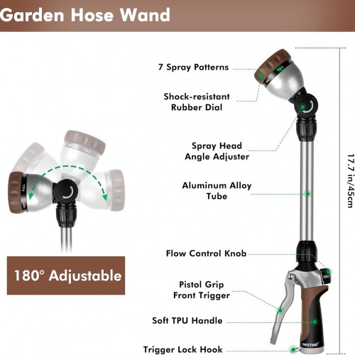 - ERGONOMIC DESIGN – Coated with the soft TPU and non-slip grip, this light-weight hose wand adds comfort and avoids hand fatigue. The pistol grip front trigger is easy to hold and can be locked anytime.