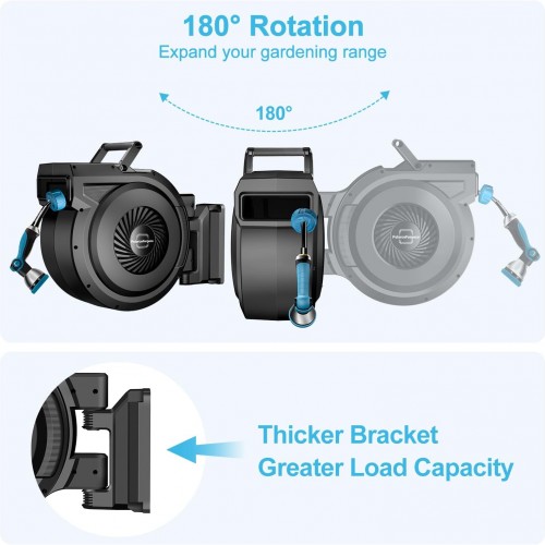 - Wider Watering Range – With an ultra-long 80 FT water hose, our hose reel offers an extensive irrigation range and supporting 180° direction adjustment. Take care of every corner in your garden with ease. Enjoy the convenience of complete garden care at your fingertips.