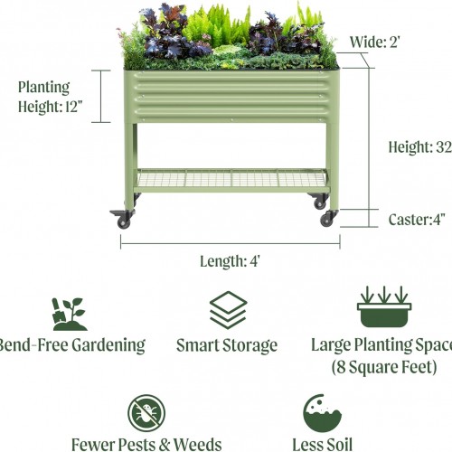 Rolling Elevated Raised Garden Bed-V Series, 2′ x 4′ Garden Beds with Legs & Storage Rack for Patio & Porch, 700 Lbs Weight Capacity, Outdoor Planter Box for Vegetables Flower Herbs, Olive Green