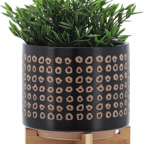 Sagebrook Home Ceramic Planter with Bamboo Stand – Textured Mid-Century Modern Plant Pot for Indoor & Outdoor Home Garden Decor – 10″ Green
