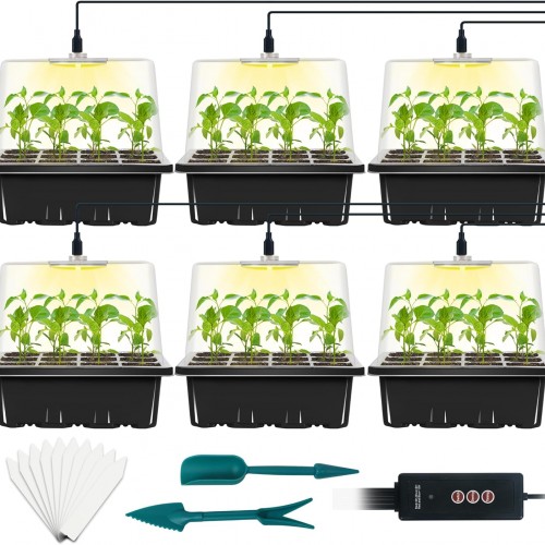 - 【Upgraded Lighting System】Seed starter kits are equipped with grow light, which is brightness-adjustable and timing-controlled to give a premium growing environment. Simulating the full spectrum of sunlight to promote photosynthesis and provide the best environment for seed germination.