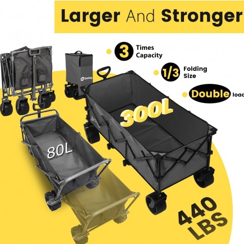 - 【𝐒𝐦𝐚𝐥𝐥𝐞𝐬𝐭 𝐚𝐧𝐝 𝐋𝐚𝐫𝐠𝐞𝐬𝐭】:The ratio of folding size to expand size is 𝟏:𝟔,other wagon are only 1:4.It is convenient to be stored at home, garage and car boot, and we also offer a 𝐜𝐚𝐫𝐫𝐲-𝐨𝐧 𝐛𝐚𝐠 for carrying and storing.
