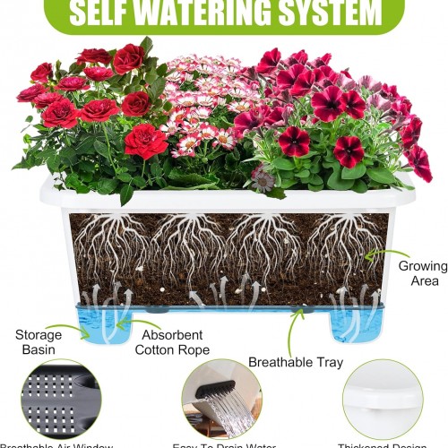 Self-Watering Rectangle Planter Boxes 8-Pack, 15.7-Inch Window Box Planter with Drainage Holes & Trays, Pots for Vegetables, Herbs, Flowers, Garden Windowsill Balcony (White, 15.7*8.3*7.1 inch)