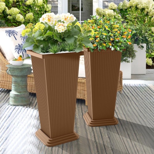 Set of 2 Tall Planters, 24″ Large Indoor Outdoor Flower Pots with Tray, Modern Tapered Planters for Porch, Patio, Garden, Backyard