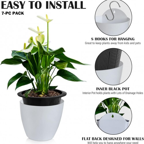 - [ Self Watering Hanging Planter ] 7-Pack. Double layer design where the inner pot holds the plant and the outer pot holds the water. A cotton rope interconnects the two layers of the wall mount planter and allows for the transfer of the water from the outer water layer to the inner plant layer.