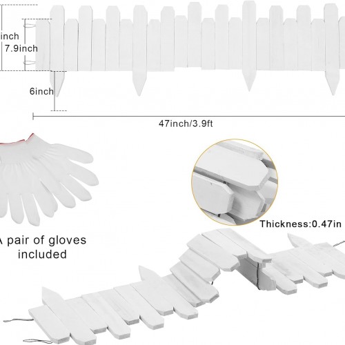 - Sufficient Quantity and Suitable Size: you will receive 6 packs of garden wooden fences with a pair of gloves, 10 inches in height above ground, stakes are 6 inches in height, 4 ft in total length, total length of 6 combinations 24 ft; Designed for dividing or defining boundaries; The quantity is enough to meet your daily and replacement needs