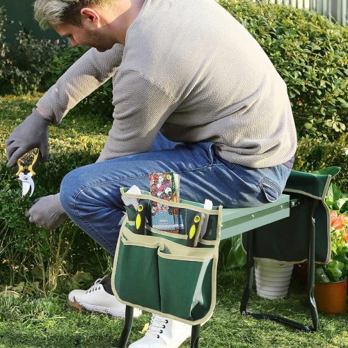 SONGMICS Garden Kneeler and Seat, Multifunctional Garden Kneeling Bench, Gardening Gifts for Women Men, Folding Gardening Stool, with 2 Tool Bags, 8-Inch Wide Kneeling Pad, Dark Green UGGK060L01
