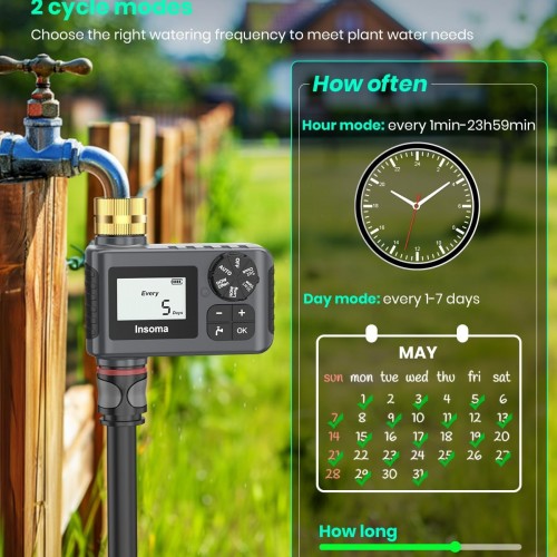 Sprinkler Timer with Brass Inlet and Outlet, Programmable Water Timer for Outdoor Garden Hose, Hose Timers with Rain Delay/Manual/Auto Mode, Drip Irrigation and Lawn Watering System, 1 Outlet