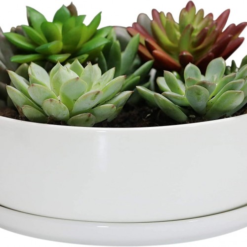 SQOWL 8 Inch Modern Round Flower Pot Black Ceramic Cactus Succulent Planter Pot with Removable Saucer