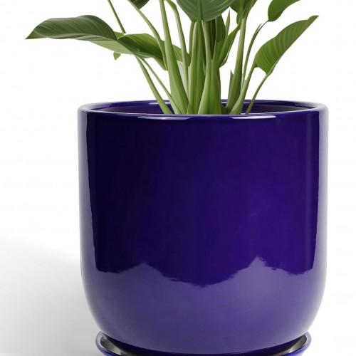 SQOWL 8 inch Plant Pot – Ceramic Planter with Drainage Hole and Saucer, Round Flower Pot for Indoor Plants, Decorative Planter Outdoor, Patio Balcony Decor, House Warming Gifts, Black and White