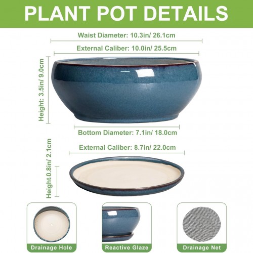 - Sizes and Accessories: The top outer diameter of the bonsai pots is 10.0″/ 25.5cm, the waist diameter is 10.3″/ 26.1cm, and the height including tray is 3.9″/ 10.0cm, with a removable ceramic plant saucer and a mesh pad(ONLY CERAMIC PLANTER IS INCLUDED, PLANTS ARE NOT INCLUDED)