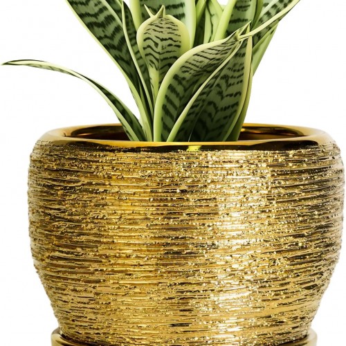 - Drainage Hole and Saucer: Plant pot indoor with drainage hole efficiently removes excess water, helping your plants thrive. The ceramic tray catches any overflow, so you can place the gold planter anywhere with confidence
