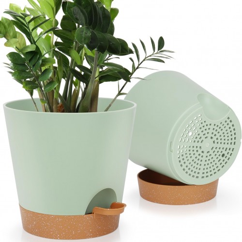 SQOWL Ceramic Planter for Indoor Plants – 8 Inch Plant Pot with Drainage Hole Outdoor Flower Pot Modern Round Planter Medium Plant Pot for Garden Office Decor White